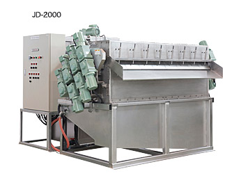 JD系列是利用"重力過濾"和"壓縮"原理的有機(jī)污泥脫水機(jī)。共14個(gè)滾筒組成該設(shè)備的多重圓盤過濾器。該脫水機(jī)工作時(shí)所有的滾筒都時(shí)刻轉(zhuǎn)動(dòng)著,絮凝的污泥很難發(fā)生堵塞, 因此不僅可以用于各種廢水處理產(chǎn)生的剩余污泥,還可以用于含油污泥及加壓浮除污泥。